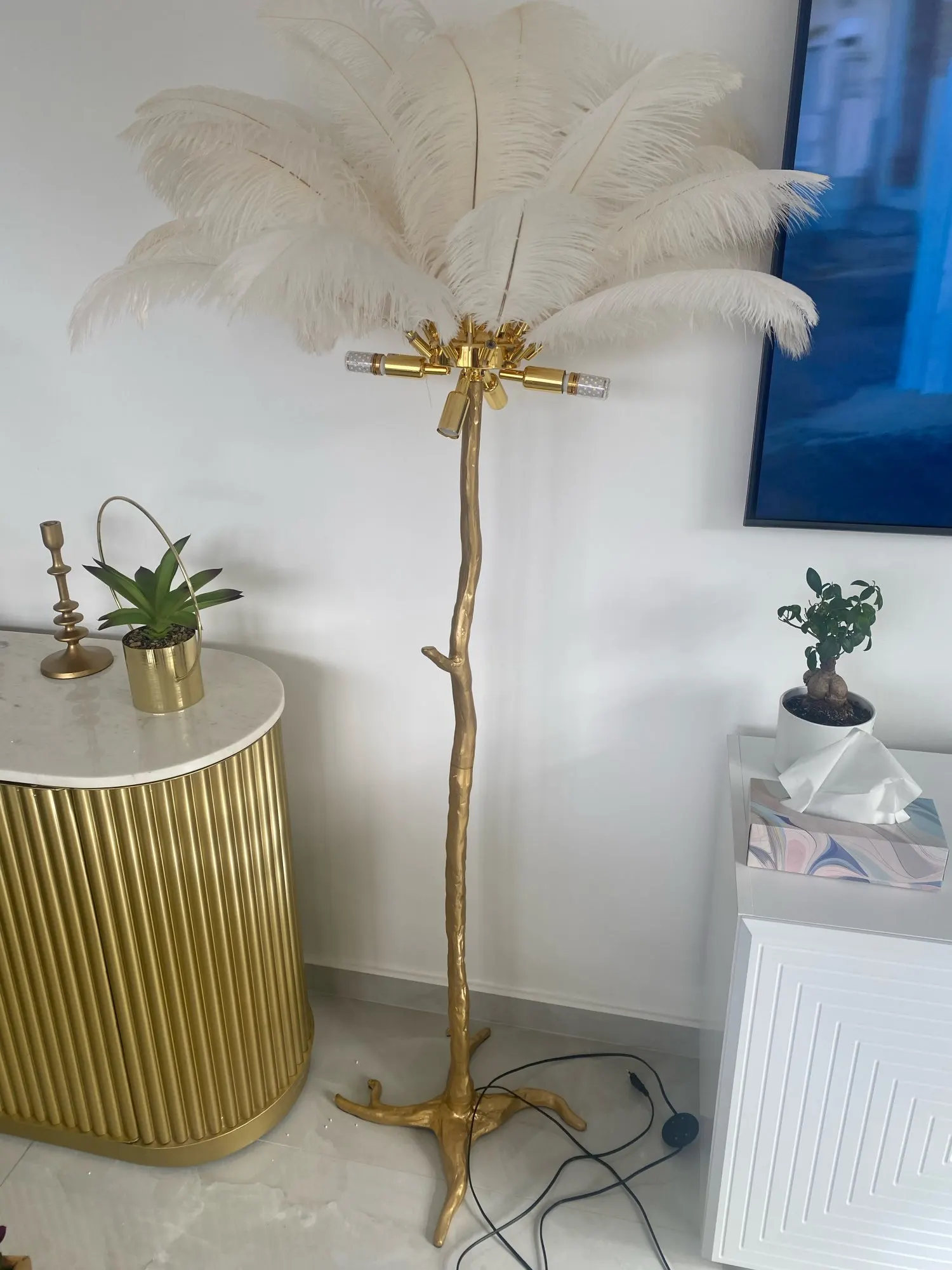 Setzen Sie ein stilvolles Statement mit der FeatherGlow Stehlampe – eine bezaubernde Kombination aus nordischem Minimalismus und leichter Luxus-Ästhetik. Die weichen, wolkenartigen Straußenfedern verleihen jedem Raum einen traumhaften, eleganten Touch.